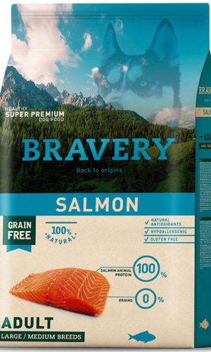 El precio original era: $48.990.$44.990El precio actual es: $44.990.Bravery Salmon Adult Large/Medium Breeds 4 Kg
