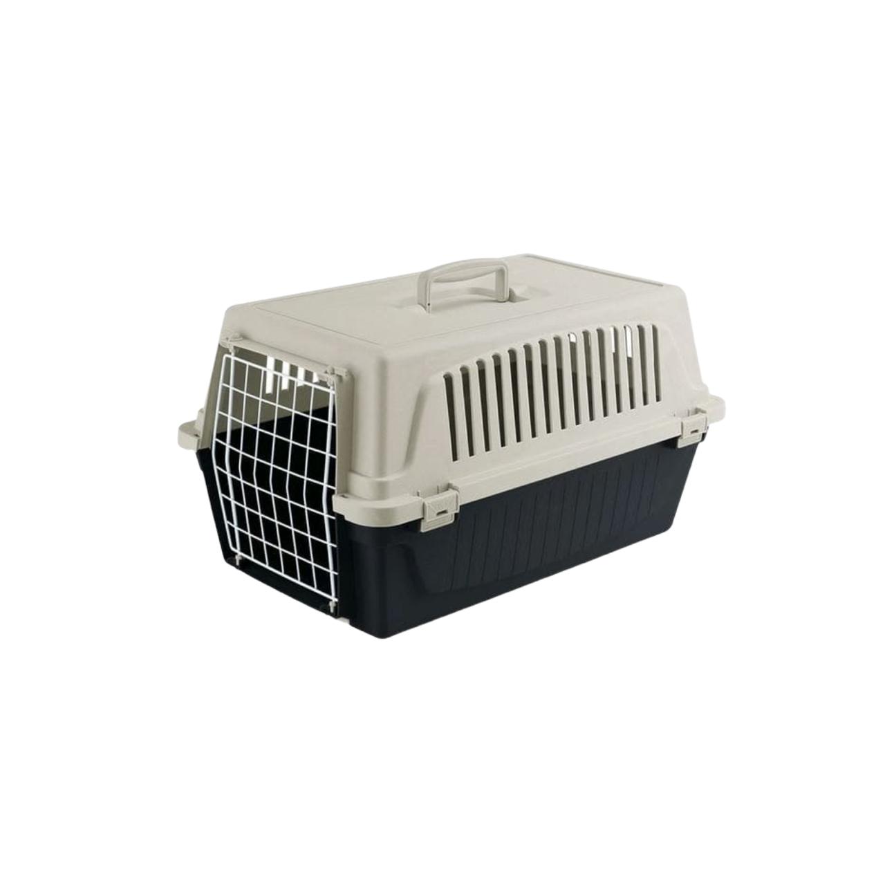 Transportadora Atlas 20, un aliado de viaje para gatos y perros, es lo más básico que tenemos en artículos para transportar a tu mascota y tiene múltiples funciones. Atlas es fácil de llevar contigo gracias a su asa fija y es ideal para viajar con tus mascotas en los medios de transporte más comunes (coche, tren, barco, avión). Esta jaula de viaje para gatos y animales pequeños dispone de una sólida puerta de acero cubierto de plástico. Es muy robusta, gracias a su sistema de agarres laterales. Además, tiene aberturas laterales para la ventilación, que aseguran que haya siempre aire fresco dentro de la caja.